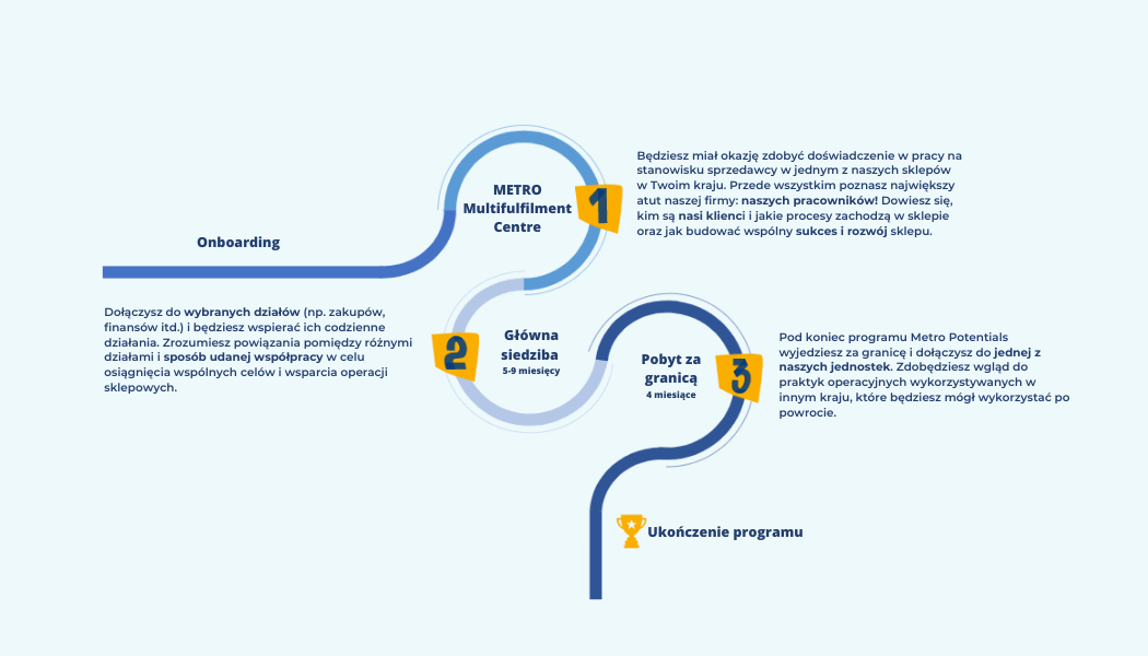 Metro Potentials to 1,5 roczny program menedżerski dla osób, które ukończyły studia licencjackie albo magisterskie i mają niewielkie doświadczenie zawodowe.